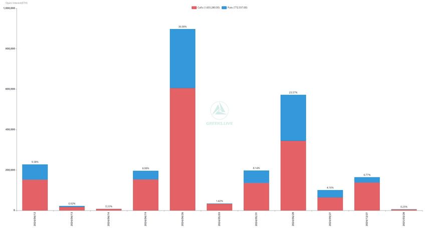En betydelig mængde Bitcoin (BTC) og Ethereum (ETH) optioner udløber den 12. april 2024. Den nominelle værdi af 21.000 BTC-kontrakter og 230.000 ETH-kontrakter, der snart udløber, er henholdsvis 1,5 milliarder dollars og 800 millioner dollars.