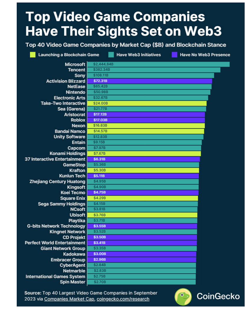 Desuden afslører forskning fra CoinGecko, at mere end 70% af de største spilstudier aktivt investerer i Web3-spilforetagender. Selvom dette viser det fremtidige potentiale og løfterne bag Web3-spilindustrien, bemærkede CoinGecko nogle potentielle udfordringer forude.