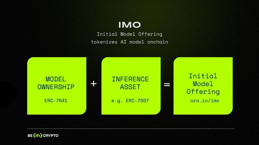 I erkendelse af behovet for en ny model, der afbalancerer open source-samarbejde med økonomisk levedygtighed, har ORA introduceret begrebet “IMO”, som står for Initial Model Offering. I sin essens er præmissen for IMO klar. Hvis tokenisering gælder for alt, så er AI-modeller ikke noget særsyn og kan tokeniseres til udstedelse af aktiver. Det giver skaberne mulighed for at få deres investering tilbage og potentielt tjene direkte på deres udvikling.