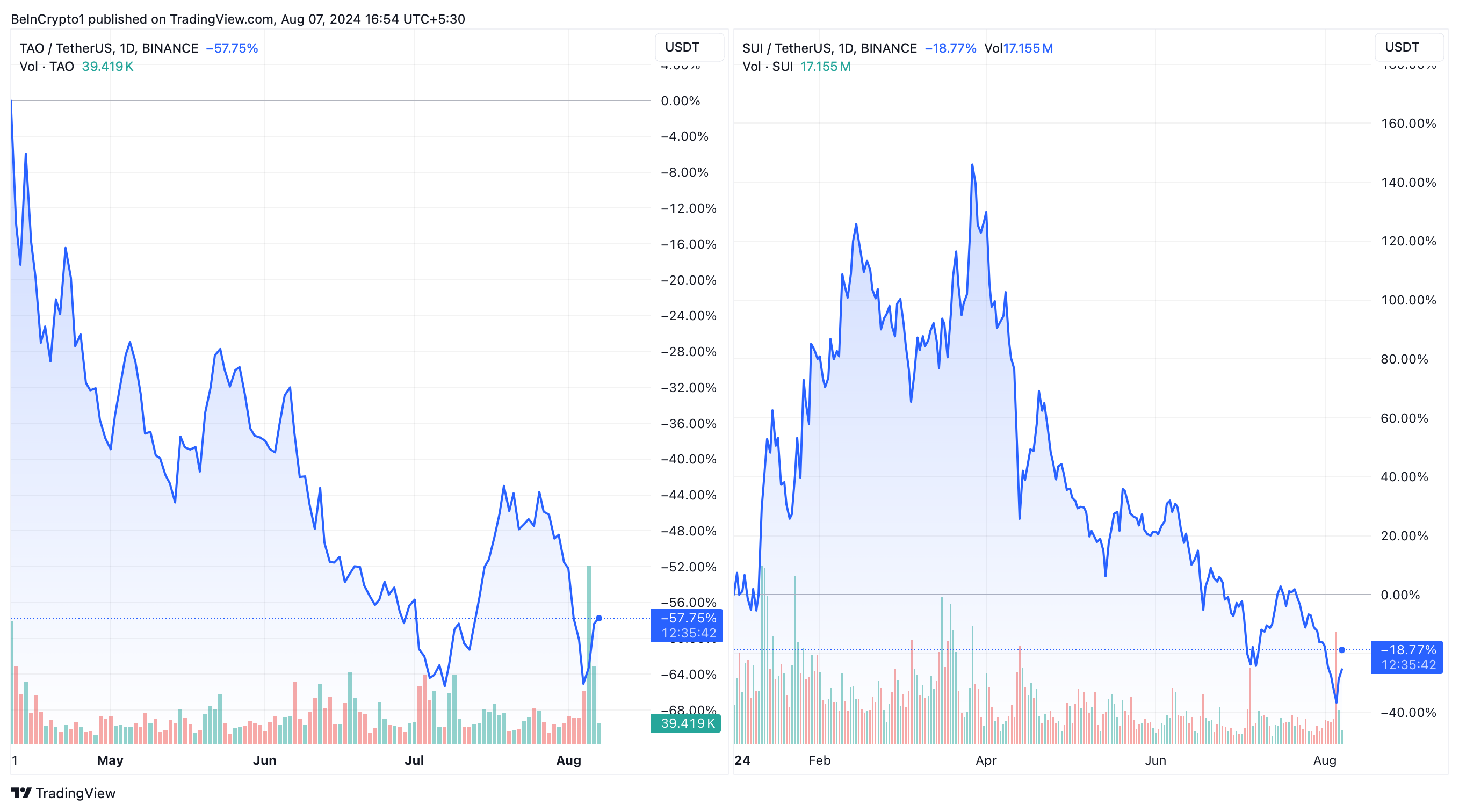 SUI og TAO har haft det svært i 2024