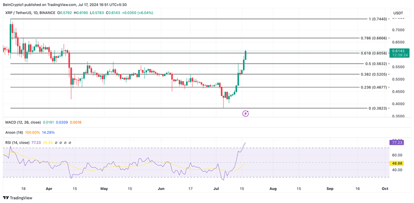 Ripple’s (XRP) prisstigning på 38% de sidste syv dage har skubbet den til en fleremåneders højde. Tokenen handles i øjeblikket til $0.61, en pris, den sidst så den 12. april.