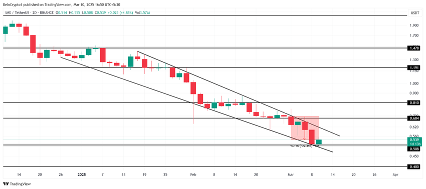 Hvis investorentusiasme støtter IMX, kan altcoinen bryde gennem modstanden på $0.684 og sigte mod $0.810. Men hvis det ikke lykkes at bryde dette niveau, vil det afvise den bullish udsigt. I et bearish scenarie kan IMX miste støtten ved $0.508, hvilket kan føre til et potentielt fald mod $0.400.