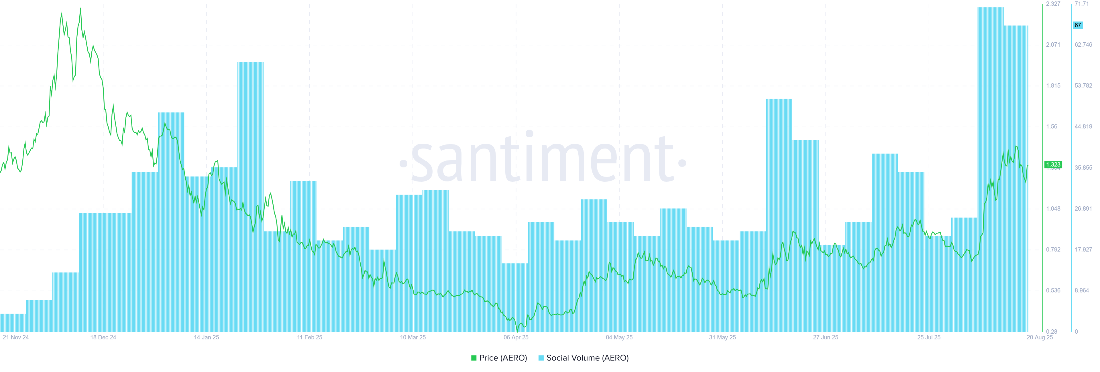 Santiment-data afslører også, at AERO’s sociale diskussionsvolumen i august nåede et rekordhøjt niveau, hvilket afspejler en stigende investorinteresse i projektet.