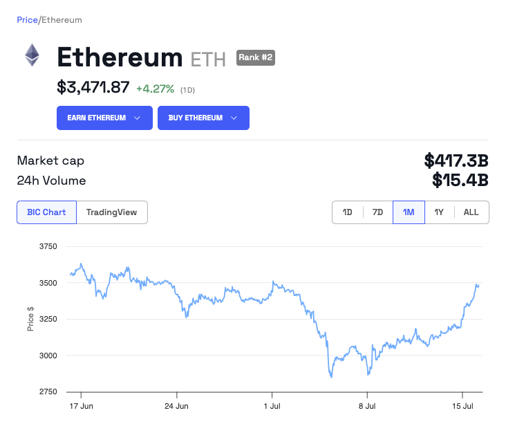 Den forventede godkendelse og lancering af disse Ethereum-baserede ETF’er markerer betydelige fremskridt for kryptosektoren. Det skubber digitale aktiver tættere på mainstream accept. Ethereum (ETH), verdens næststørste krypto målt på markedsværdi, har oplevet en prisstigning på 4,27% i de seneste 24 timer og handles nu omkring $3,471.