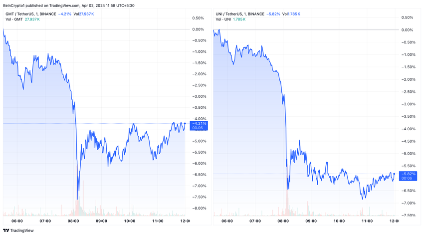 Efter disse begivenheder faldt UNI’s pris også med næsten 6%.