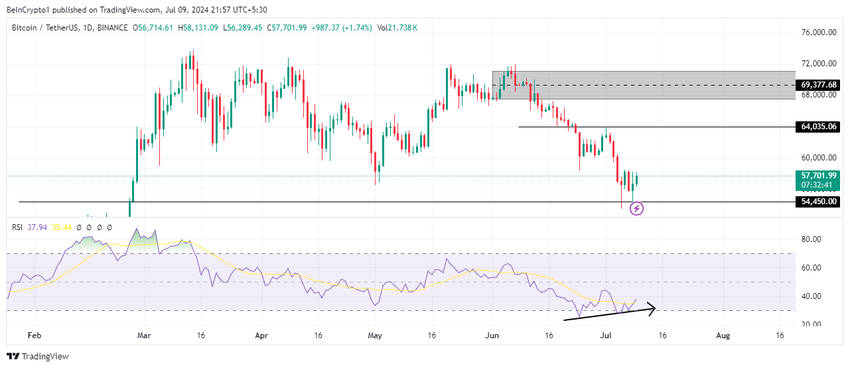 Den populære trader og analytiker Rekt Capital deler hans optimisme. Han sagde, at Bitcoin viser nogle indledende tegn på stabilitet efter faldet. Keith Alan, medstifter af handelsressourcen Material Indicators, gentager betydningen af $54,000-intervallet som et støtteniveau.