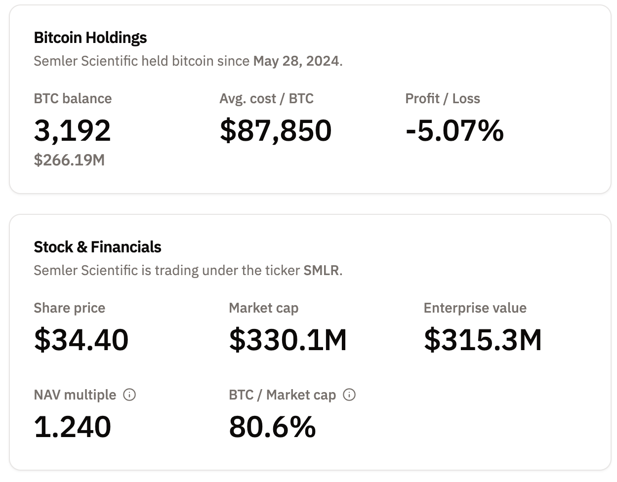 Semler Scientific (SMLR), et amerikansk medicinsk teknologiselskab, har afsløret planer om at erhverve mere Bitcoin (BTC) på trods af at stå over for et urealiseret tab på 5,0% på sine tidligere BTC-investeringer.