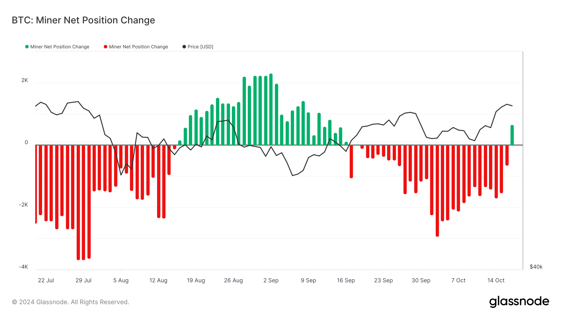 På den dag beholdt minere kollektivt 658 BTC. Det var første gang siden 16. september, at de fleste minere på Bitcoin-netværket afholdt sig fra at sælge deres beholdninger.
