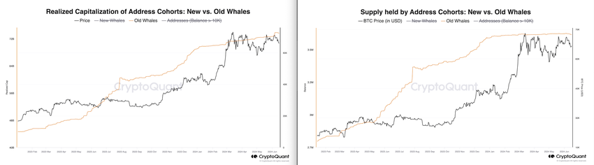 Nye hvaler akkumulerer aggressivt Bitcoin, mens gamle hvaler reducerer deres beholdninger lidt.