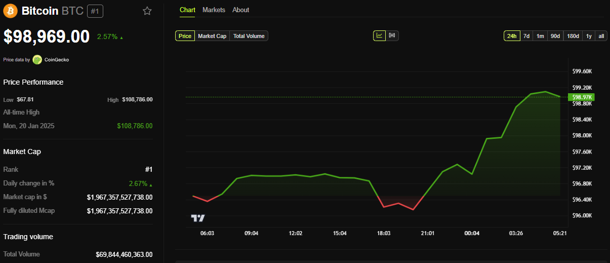 Bitcoin, der nærmer sig $100,000, er særligt udsat, da det forbliver bundet til global risikostemning.