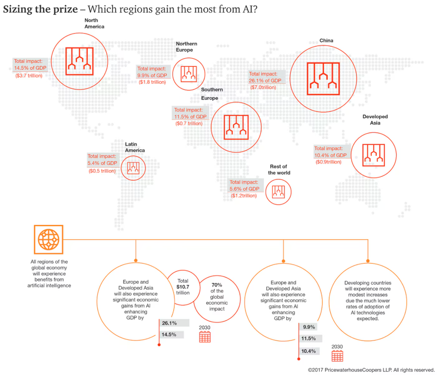 “PwC projekterer , at AI og krypto kan tilføje henholdsvis $ 15.7 billioner og $ 1.8 billioner til den globale økonomi inden 2030. Selvom det løber op i $ 17.5 billioner, ville jeg ikke blive overrasket over at se deres synergier have en sammensat effekt, der kunne drive den samlede værdi til $ 20 billioner eller derover, “sagde han.