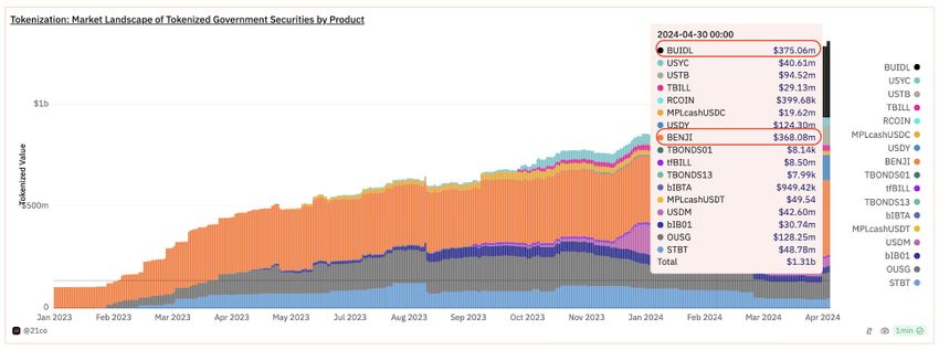 Vigtigt var det, at BeInCrypto rapporterede, at BUIDL er blevet verdens største finansfond, der er tokeniseret på en blockchain pr. 1. maj. Den overgik Franklin Templetons, Franklin OnChain US Government Money Fund, i markedsværdi.