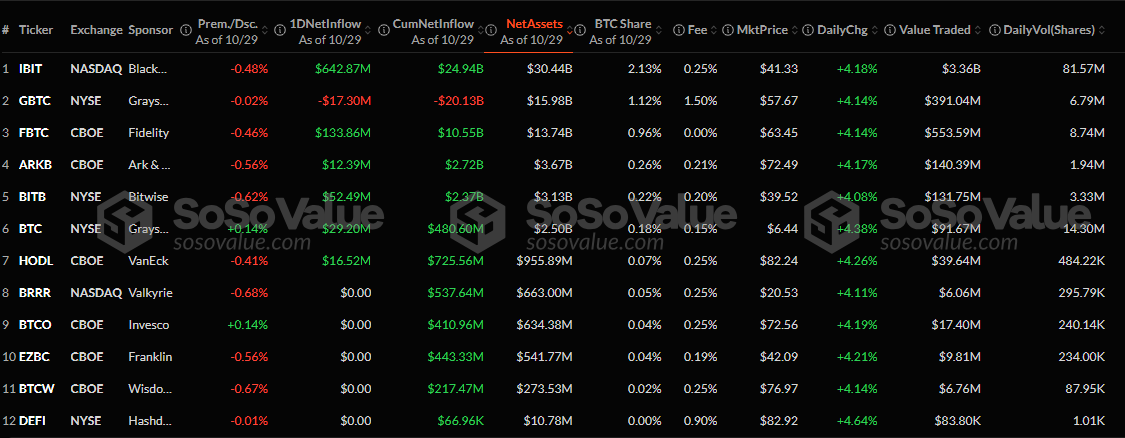 IBIT spot Bitcoin ETF registrerede indstrømninger på 642,9 millioner dollars i tirsdags, mere end dobbelt så meget som de positive strømme registreret i mandags. Ligeledes nåede den omsatte værdi 3,36 milliarder dollars, som vist ved data på SoSoValue. Denne stemning var delt på tværs af alle amerikanske Spot Bitcoin ETF’er, som registrerede øget handel.
