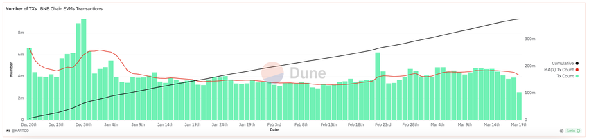 BNB-kædens antal af transaktioner kan gå ind i en negativ trend