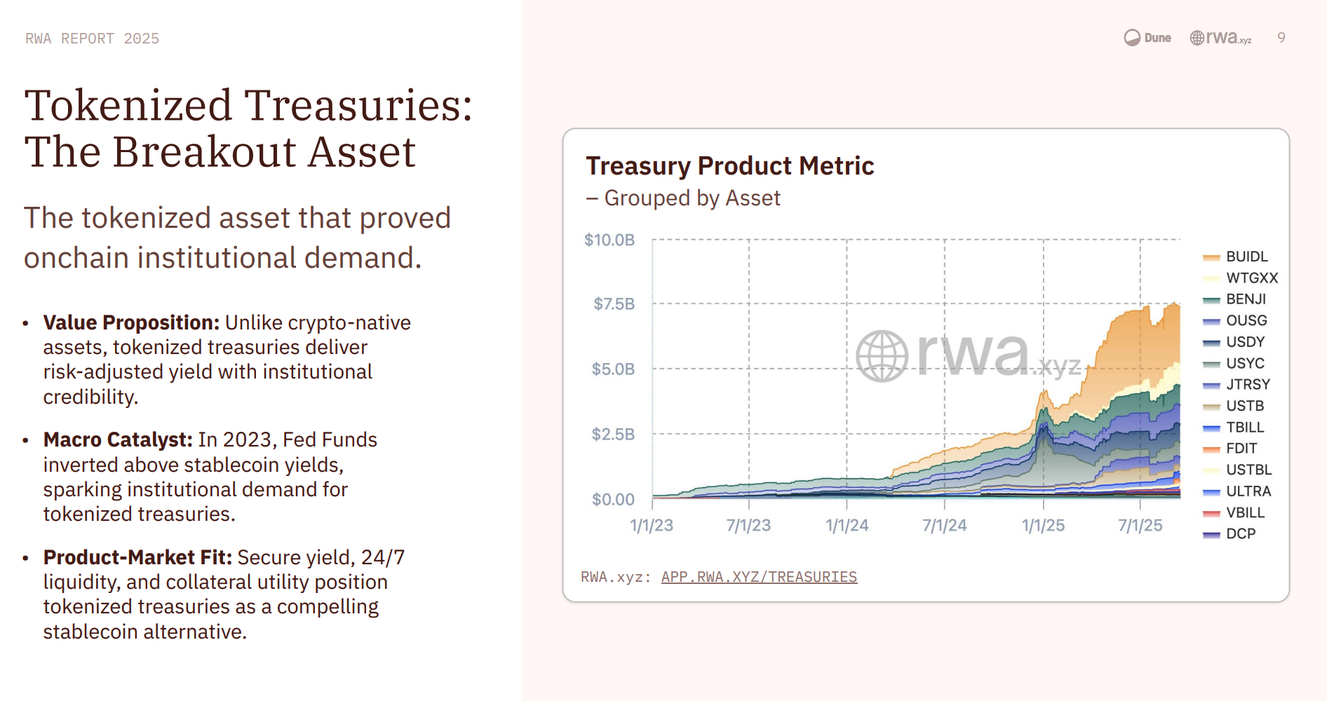 Dune × RWA 2025 rapporten viste tokeniserede amerikanske statsobligationer stige til 7,5 milliarder dollars — bevis på, at on-chain afvikling skalerer ud over pilotprojekter. Deloittes Financial Services Predictions 2025 forudså, at en ud af fire store globale overførsler vil køre på tokeniserede netværk inden 2030, hvilket sparer virksomheder cirka 12,5% i gebyrer, eller 50 milliarder dollars om året.