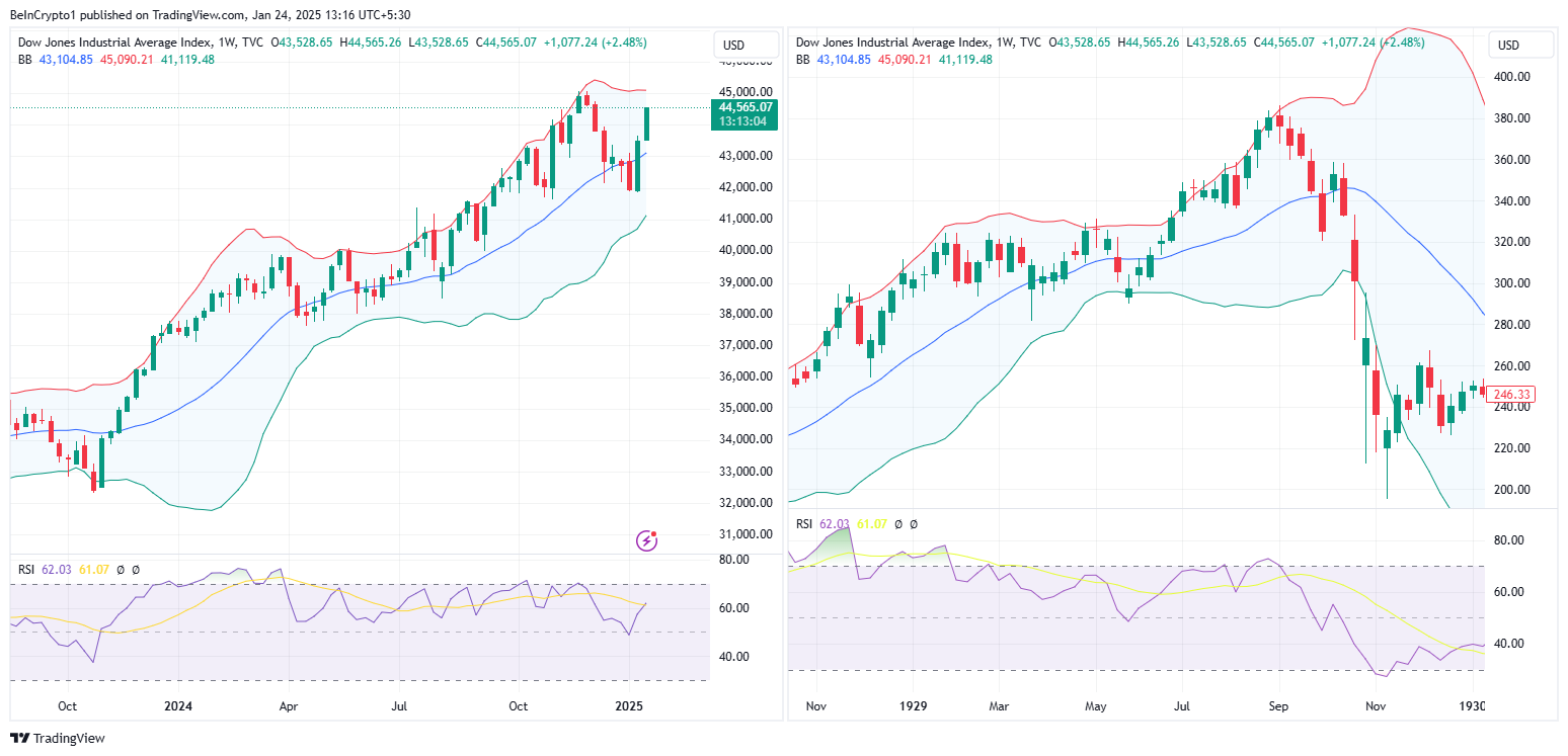 Analytikeren drager paralleller til aktiemarkedskrisen i 1929, som fremhævede farerne ved spekulative bobler. De fremhævede slående ligheder i tekniske indikatorer som Relative Strength Index (RSI), der i øjeblikket spejler dem fra 1929. Med dette forudsiger analytikeren et potentielt flash crash mod slutningen af januar 2025.