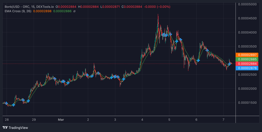 BONK viser tegn på en livlig opstigning. Memecoin blev for nylig noteret på Robinhood, og dens pris steg med 19%. Men efter at have nået en toppris på 0,000045 dollars, gennemgik BONK-token en korrektion, hvor prisen blev justeret ned til 0,000029 dollars, en korrektion på 32,56%.