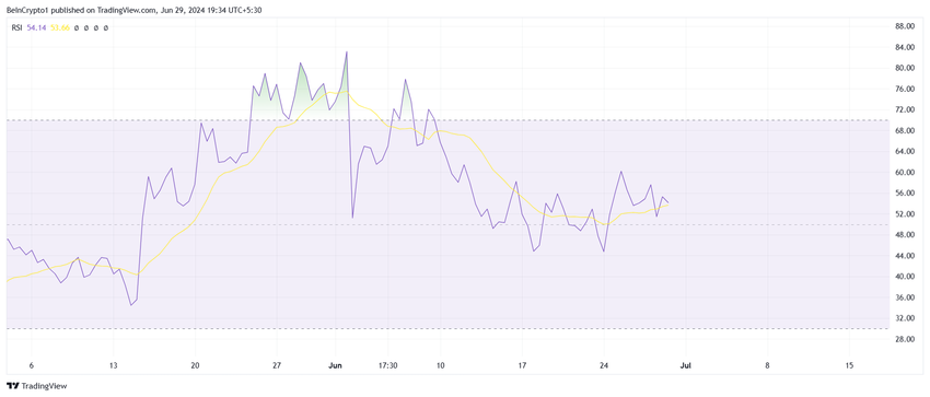 Bretts relative styrkeindeks (RSI) forbliver over den neutrale linje, hvilket indikerer positive udsigter. Placeret i den bullish zone viser RSI vedvarende købspres. Denne måling er afgørende, da den afspejler prisbevægelsens momentum og de fremherskende markedstendenser.