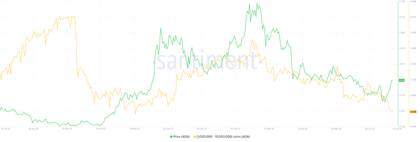 Adresserne, der holder mellem 1 million og 10 millioner ADA, har solgt mere end 120 millioner ADA, værd over $52,6 millioner. De solgte oprindeligt for at dække tab, men nu ser det ud til, at de sælger udelukkende for at sikre gevinster. Det kunne negativt påvirke Cardanos kurs.