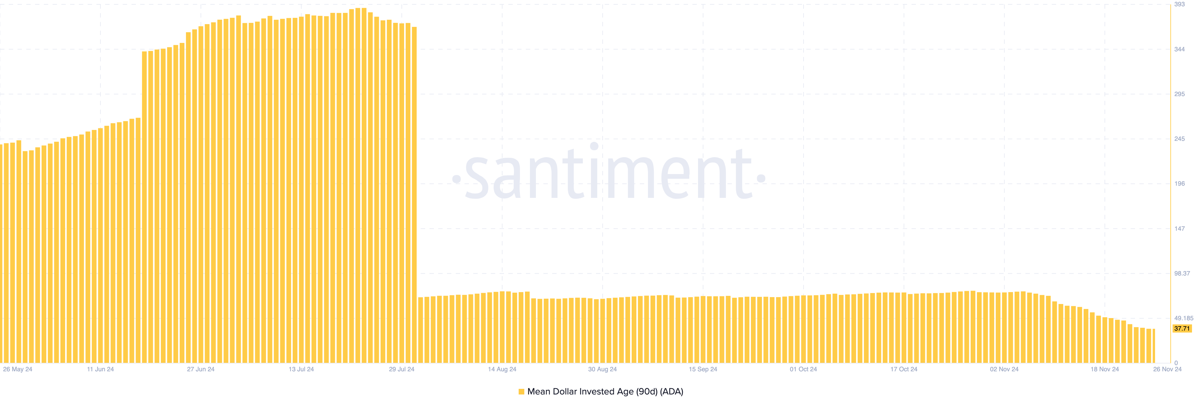 Hvis udstrømningen fra børser fortsætter med at stige, kan Cardanos kurs stige på kort sigt. En anden indikator der forudsiger en sådan bevægelse, er Mean Dollar Invested Age (MDIA).