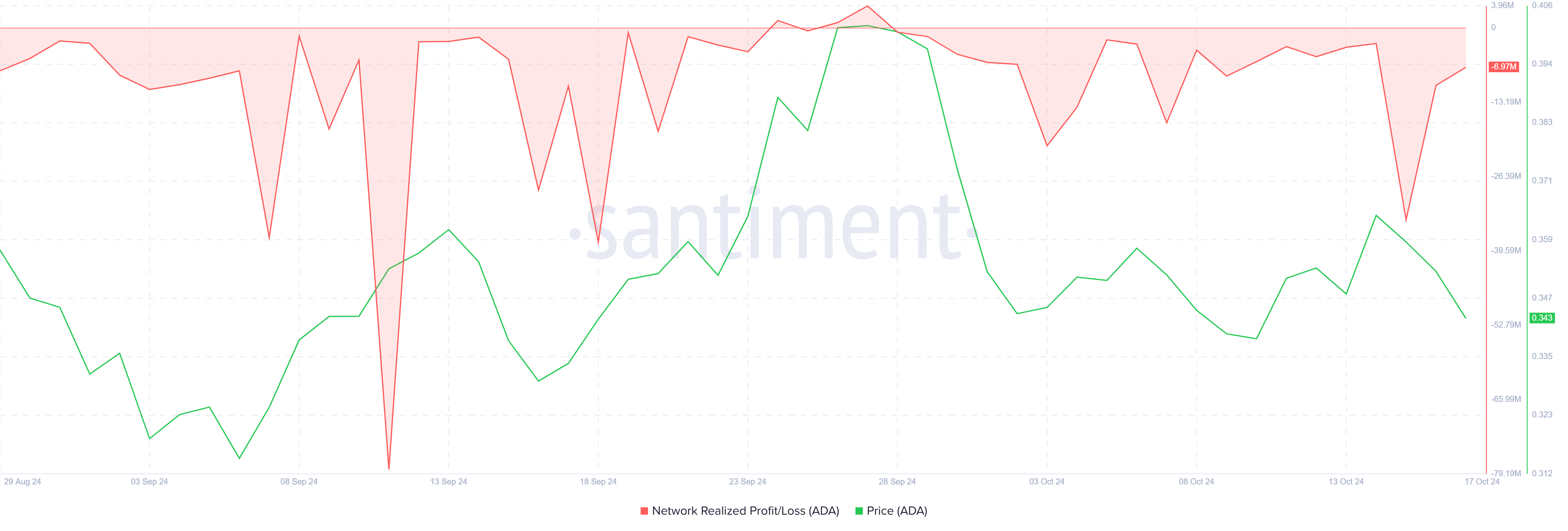 Cardanos makromomentum er ligeledes bekymrende. Indikatoren for realiserede gevinster/tab viser i øjeblikket, at de fleste ADA-holdere oplever tab. Som følge heraf er investorer mindre tilbøjelige til at sælge deres beholdninger og foretrækker at holde fast i deres aktiver, indtil priserne kommer sig. Denne “HODL”-mentalitet antyder, at salgspres er lavt, men det betyder også, at ADA ikke ser markant købsaktivitet.
