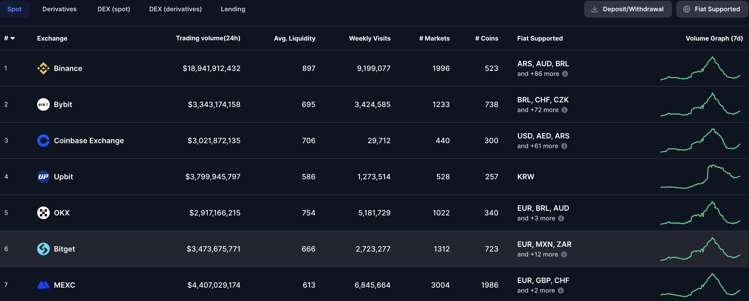 Et diagram fra CoinMarketCap viser, at Binance i øjeblikket fører i 24-timers handelsvolumen med næsten 19 milliarder dollars, langt foran Coinbase, som har lidt over 3 milliarder dollars. Denne forskel kan udløse en hård rivalisering mellem de to industrigiganter.