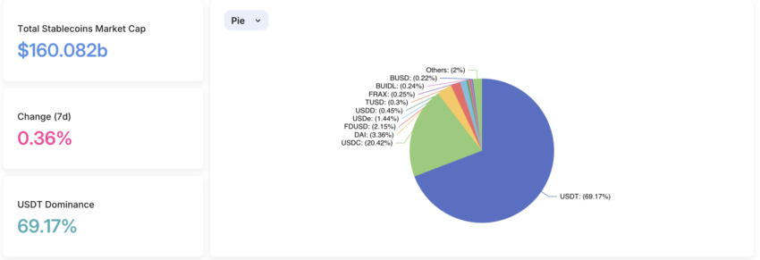 Også i februar udtrykte en anden bank – JPMorgan – bekymring over den stigende dominans af Tether’s USDT. Ifølge DefiLlama har USDT en dominans på over 69 % på stablecoin-markedet.