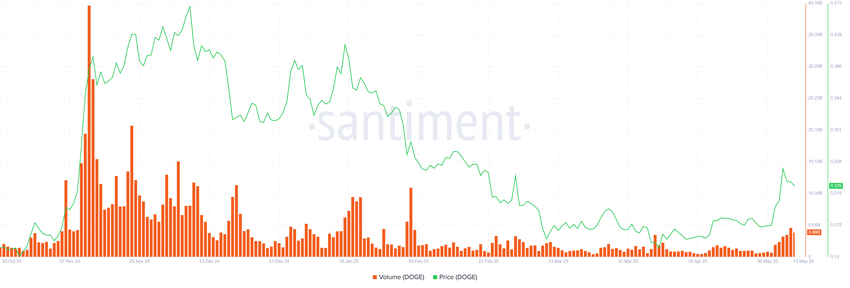 Dogecoins seneste stigning har også været karakteriseret ved relativt lav transaktionsvolumen. Dette understøtter yderligere ideen om, at denne kursstigning er spekulativ. I november 2024 var Dogecoins kurs stigning understøttet af en betydelig transaktionsvolumen på $10,27 milliarder på sit højeste. Men i denne uge, trods en lignende stigning i netværksværdi, så Dogecoin kun $1,2 milliarder i transaktionsvolumen på sit højeste.