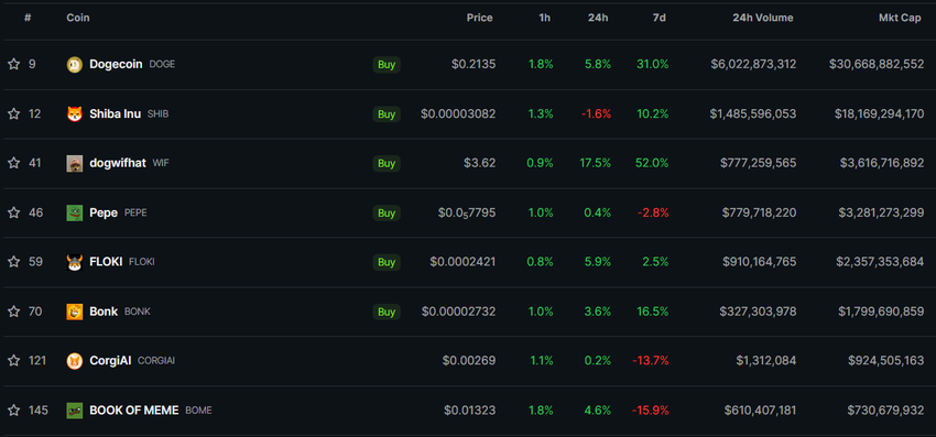 Dogwifhat klatrer til tredjepladsen på Memecoins markedsværdi-rangliste