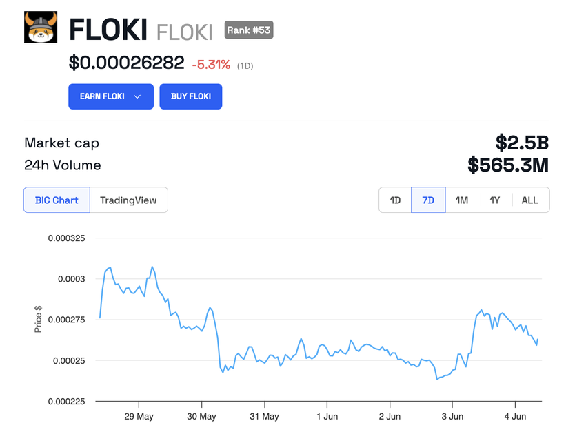 Derudover planlægger Floki at afsløre forskellige andre hjælpeprogrammer. Disse omfatter Floki trading bot og Floki decentral domain name and website service, som forventes at forbedre dens funktionalitet og integration på tværs af forskellige platforme. På trods af DWF Labs’ investeringsmeddelelse er prisen på Floki stadig faldet med 5,31 % i løbet af de sidste 24 timer.