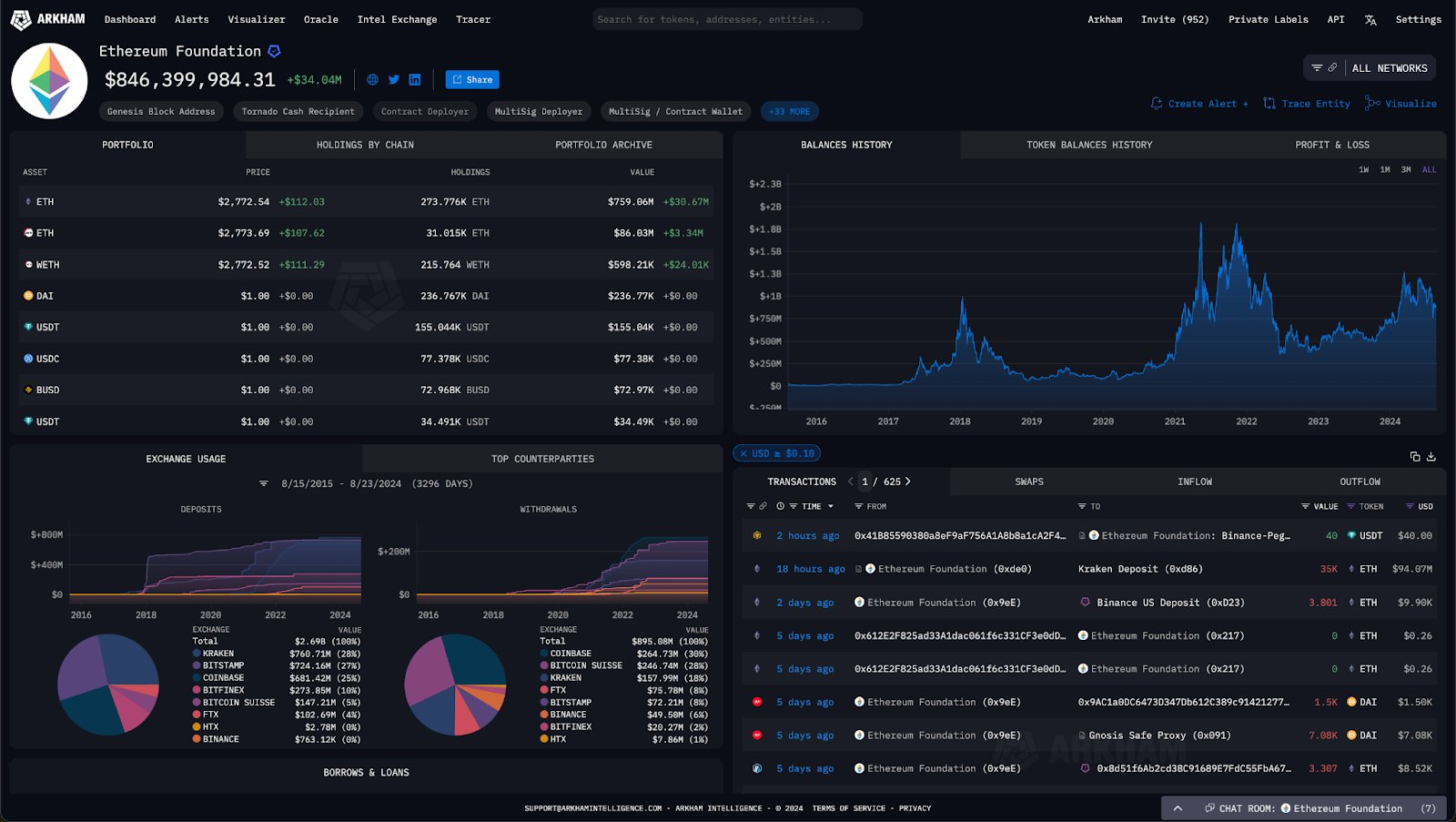 Ethereum Foundation er under beskydning for at have overført 35.000 ETH, til en værdi af omkring 100 millioner dollars, til Kraken-børsen uden at informere fællesskabet. Den 23. august rapporterede on-chain analysefirmaet Lookonchain transaktionen, hvilket vakte bred bekymring.