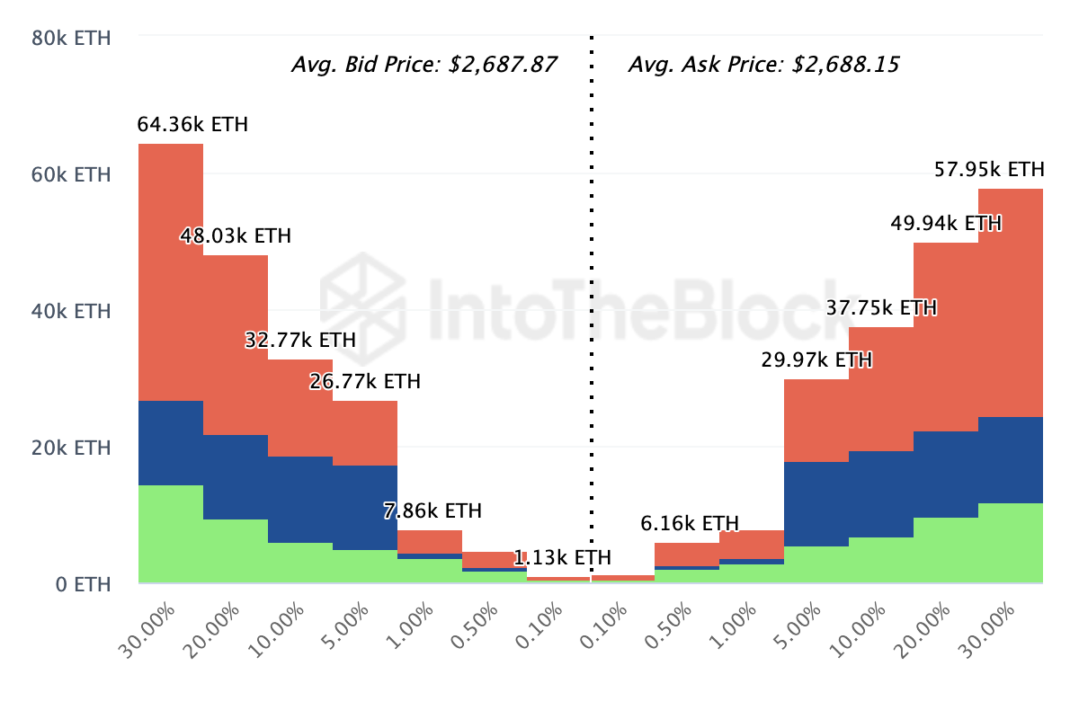 Denne tendens afspejles i købs- og salgsvolumenerne synlige på ordrebøgerne hos de største 20 børser. Som vist nedenfor køber deltagerne 185.700 ETH, værdisat til omkring $2,687 hver.