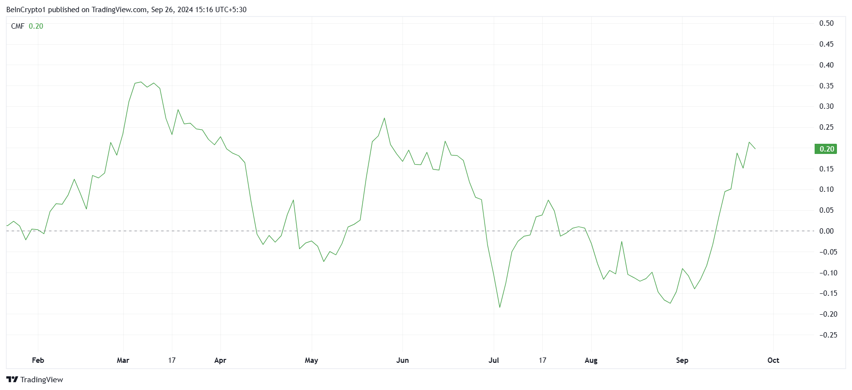 Trods den overordnede bearish stemning på makromarkedet, forbliver nogle Ethereum-ejere optimistiske. Chaikin Money Flow (CMF), en nøgle teknisk indikator, nåede for nylig et tre-og-et-halvt måneds højdepunkt, hvilket bringer den tilbage til niveauer set i juni. Det viser at der stadig foregår en akkumulering, selvom markedet kæmper for at bryde fri fra bearish tendenser.