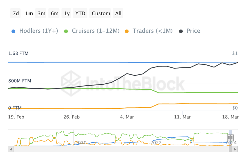 Fra den 7. marts til den 18. marts steg mængden af FTM hos kortsigtede tradere – personer, der beholder aktivet i mindre end en måned – fra 95 millioner til imponerende 206 millioner. En betydelig vækst på 116%.