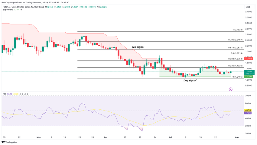 I øjeblikket handles FET til $1,29, og Supertrend viser, at tokenet måske har præsenteret et købssignal ved $1,11. Supertrend-indikatoren analyserer prisbevægelser i en nedadgående eller opadgående trend.