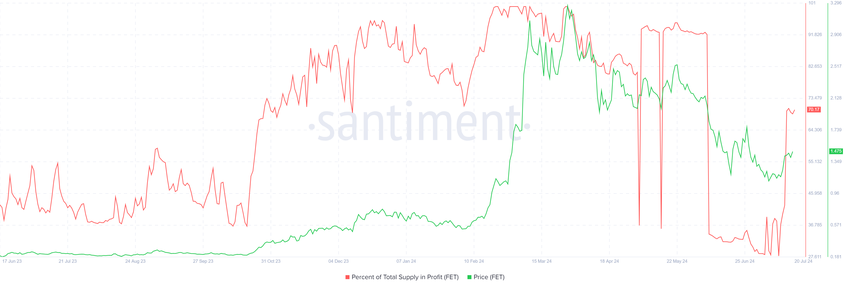 FET kursvækst de seneste dage har resulteret i en markant stigning i overskud. Ifølge Global In/Out of the Money (GIOM) indikatoren blev omkring 748 millioner FET til en værdi af mere end $1.06 milliarder profitable denne uge.