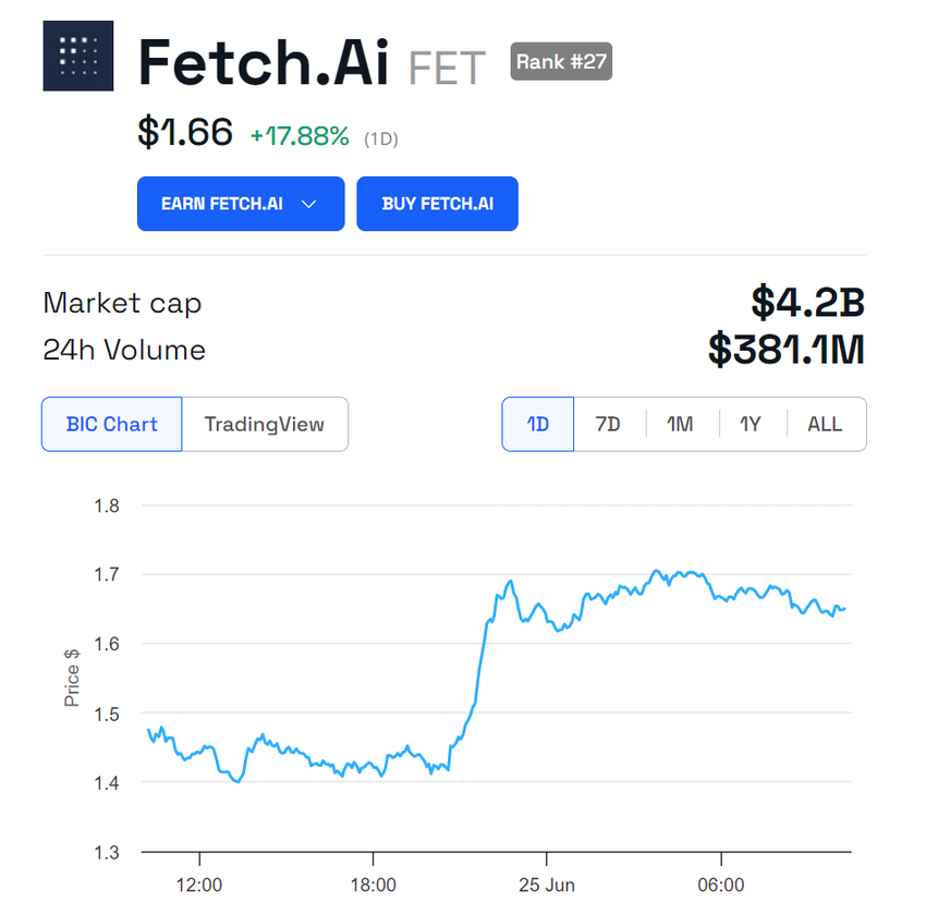 På trods af vagheden har dette tweet givet næring til spekulationer blandt kryptosamfundet, hvilket har fået FET’s pris til at skyde i vejret fra $ 1.42 til $ 1.70. Alligevel handles FET i skrivende stund nu til $1,66.