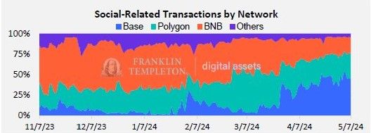 Franklin Templetons analyse viser, at omkring 46 % af alle transaktioner på Base er sammenflettet med SocialFi-applikationer. Dette markerer det som en central sektor for Bases udbredelse og efterfølgende vækst. Franklin Templeton fremhæver Friend.Tech som et godt eksempel.