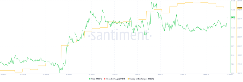 Fra 26. februar til 22. marts voksede RNDR-udbuddet på børserne kraftigt, hvilket viser de handlendes stærke appetit. Derefter begyndte udbuddet at falde fra den 22. marts til den 27. marts.