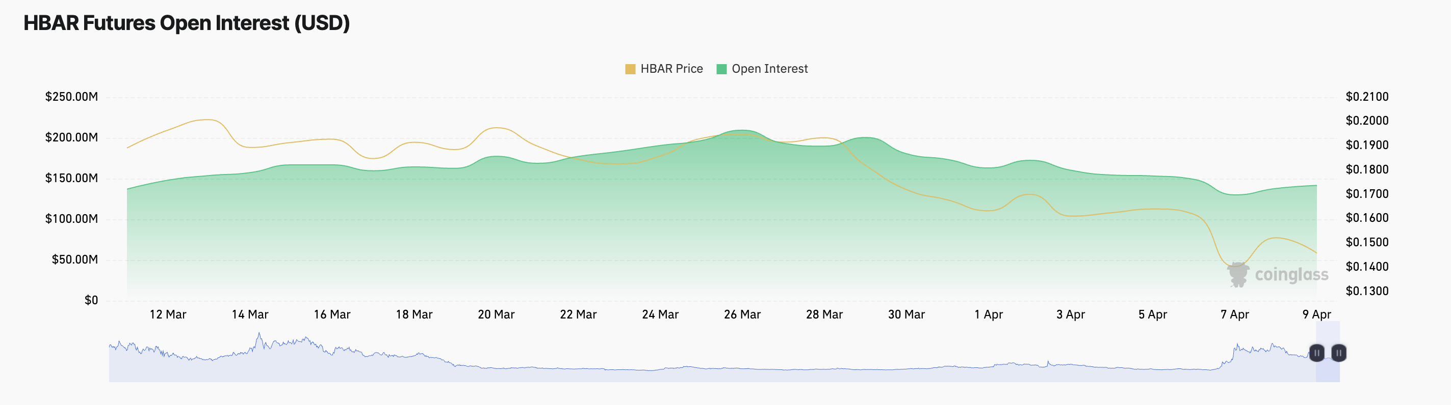 Når et aktivs kurs falder, men Open Interest stiger, tyder det på, at handlende stadig aktivt indtager nye positioner, potentielt i forventning om en fremtidig kursopsving trods det nuværende fald.