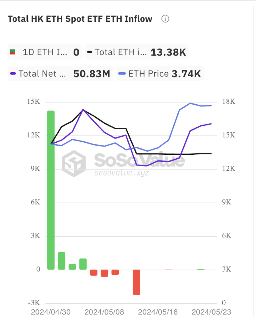På trods af nyskabelserne har spot-krypto-ETF’er i Hongkong oplevet en lav efterspørgsel siden deres debut i april. Ifølge data fra SoSoValue ligger de samlede nettoaktiver for alle Ethereum-ETF’er i Hongkong i øjeblikket på cirka 50 millioner dollars.