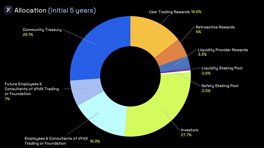 - 15,3 % til medarbejdere og konsulenter i dYdX Trading eller Foundation