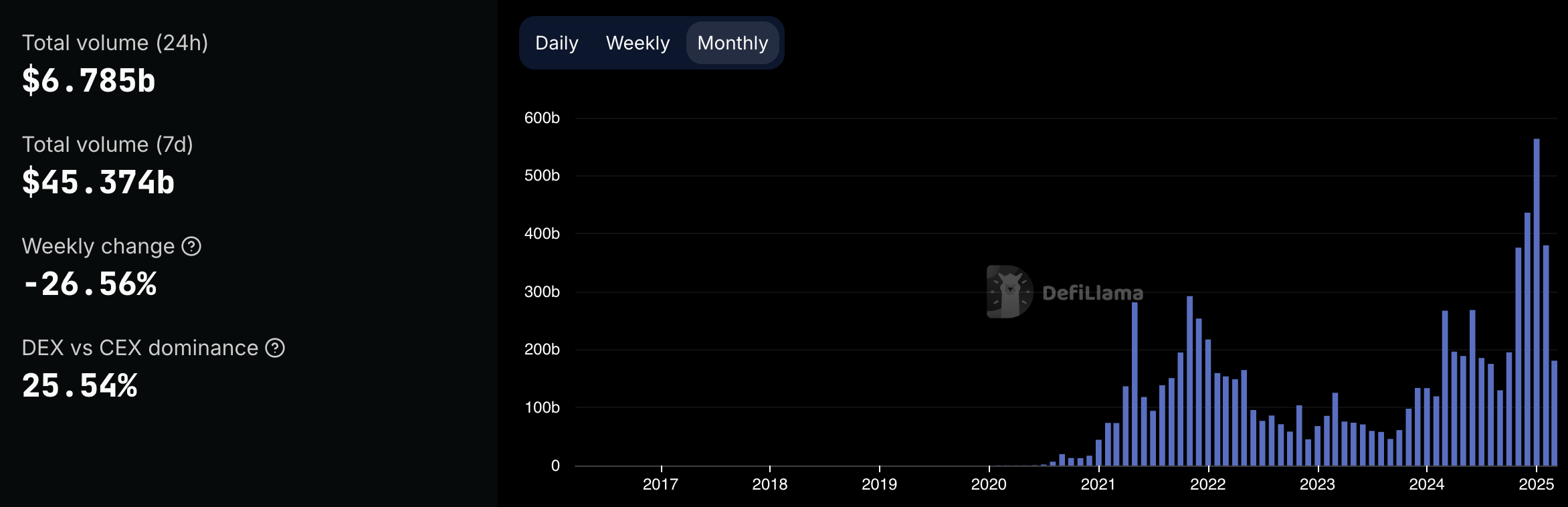 Total DEX volume as of March 21, 2025. Source: DefiLlama