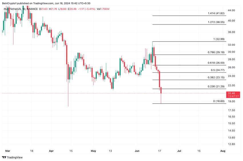 Injectives (INJ) værdi er steget med over 30% i de sidste syv dage. Til sin nuværende pris på $20,55 handler altcoinen på sit laveste niveau siden 11. december 2023.