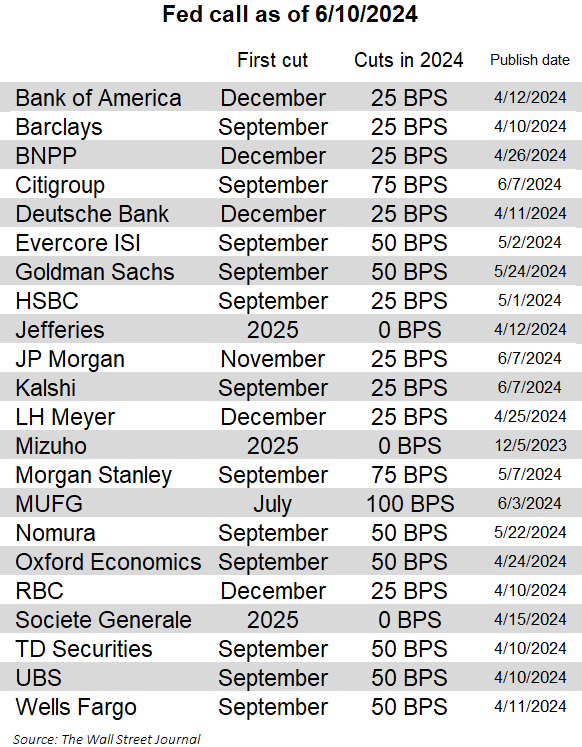Ud over JPMorgan og Citigroup, har forskellige finansielle institutioner fremskrevet deres forventninger til centralbankens rentenedsættelser i 2024. De fleste prognoser viser, at den første rentenedsættelse sker allerede i september, mens nogle forventer den så sent som i december.