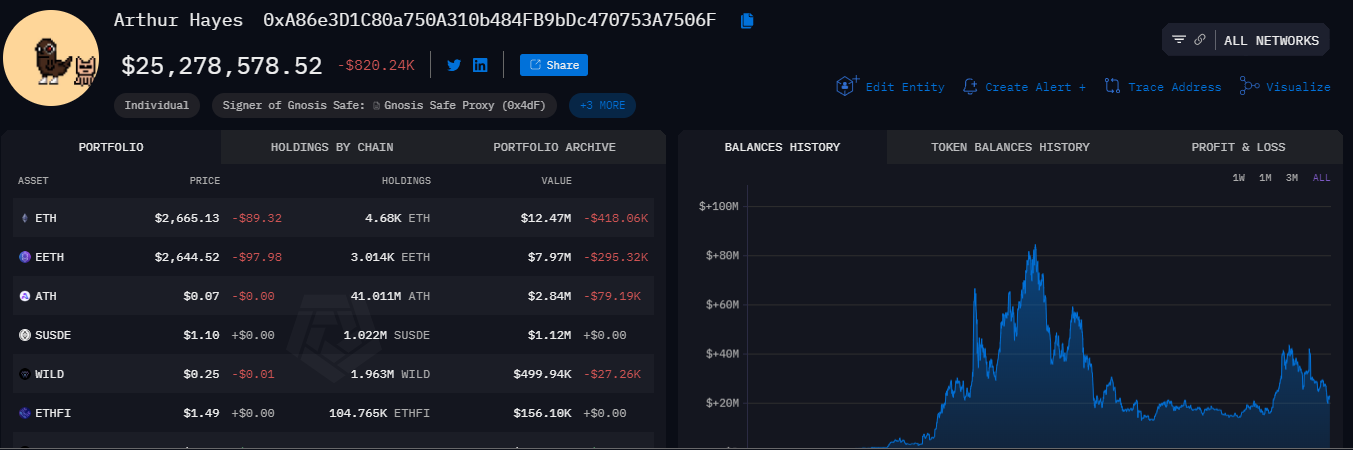 Imens angiver WuBlockchain, at Hayes besidder 41,011 millioner ATH, til en værdi af omkring $2,84 millioner, hvilket er hans tredjestørste position on-chain. Angiveligt er Arthur Hayes’ familiekontor også investor i Aethir.