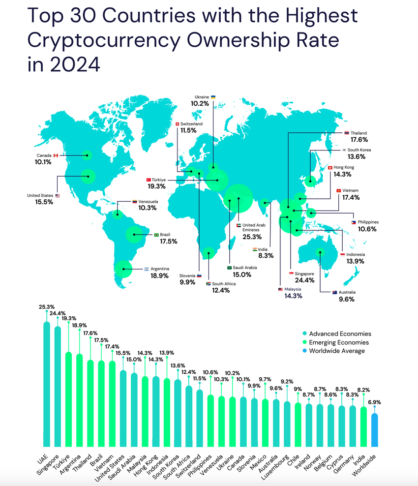 Denne imponerende vækst viser den voksende rækkevidde af digitale valutaer, som nu ejes af ca. 6,8 % af verdens befolkning.