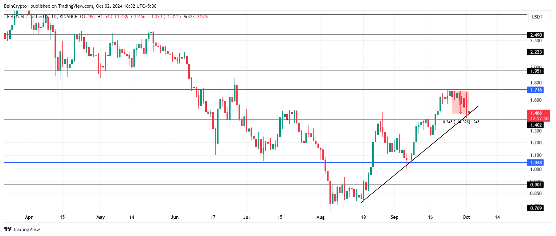 Hvis FET kan bryde igennem modstanden på $1,71 og omdanne den til støtte, ville det bane vejen for et potentielt opsving. Skulle dette ske, kunne FET stige til $1,95, hvilket markerer en stigning på 33%. Et brud på dette niveau kunne afvise det nuværende pessimistiske udsyn og sætte scenen for, at altcoinen når den psykologiske barriere på $2,00.