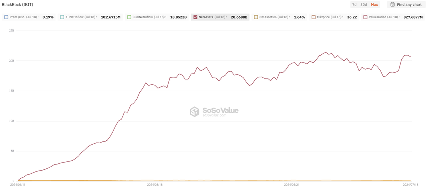 Desuden er BlackRocks iShares Bitcoin Trust det største spot Bitcoin børsnoterede fond (ETF) med over $20 milliarder under forvaltning.