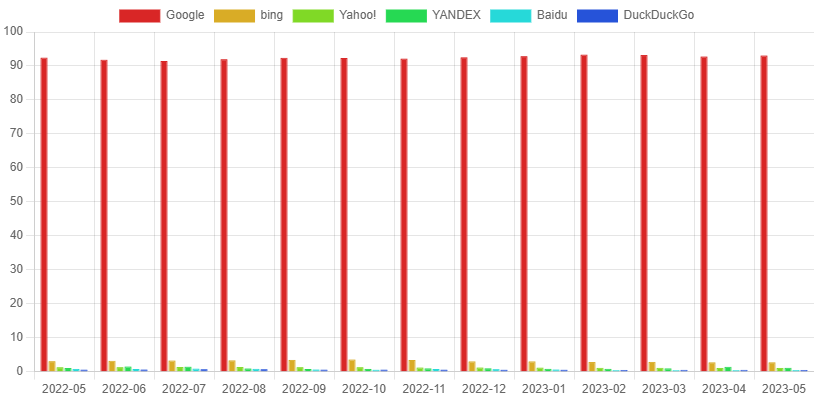 På trods af den seneste succes har Bing stadig lang vej igen, før de udgør en troværdig trussel mod Googles absolutte dominans på markedet for internetsøgninger. For at få perspektiv kan nedenstående figur hjælpe dig med at forstå den gigantiske forskel mellem de to.